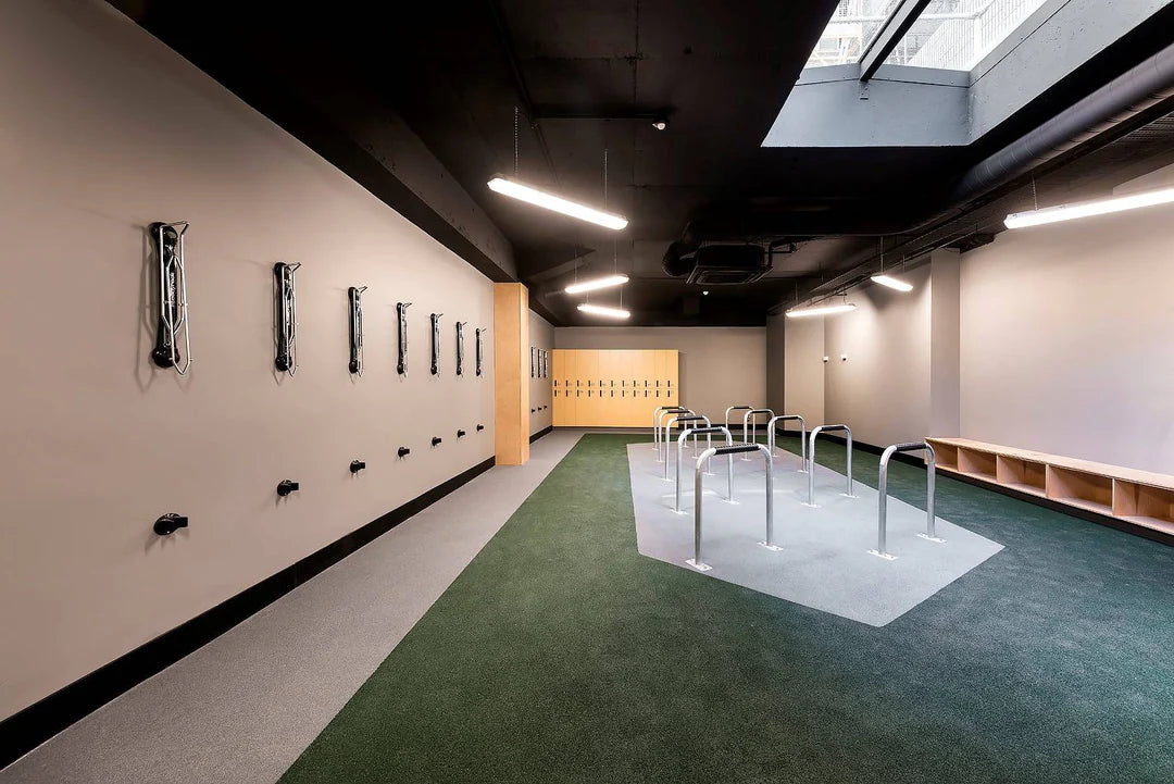 With more people around the world cycling to work, end-of-trip (EOT) indoor bike parking has never been more important in a commercial space. Here at Steadyrack, we provide Revit files and design guidelines so you can begin planning your commercial indoor bike parking facilities in your office straight away! Over the years, our team has worked on a wide range of large indoor bike parking projects across a variety of industries around the globe. From equipping the Woodside Tower in Perth, WA with over 600 Steadyracks, 570 Steadyracks installed at ONE The Esplanade in Perth, WA for Chevron, to installing 400 racks in Scott Sports headquarters in Switzerland, amongst many others, there’s no commercial indoor bike rack solution we can’t provide.
